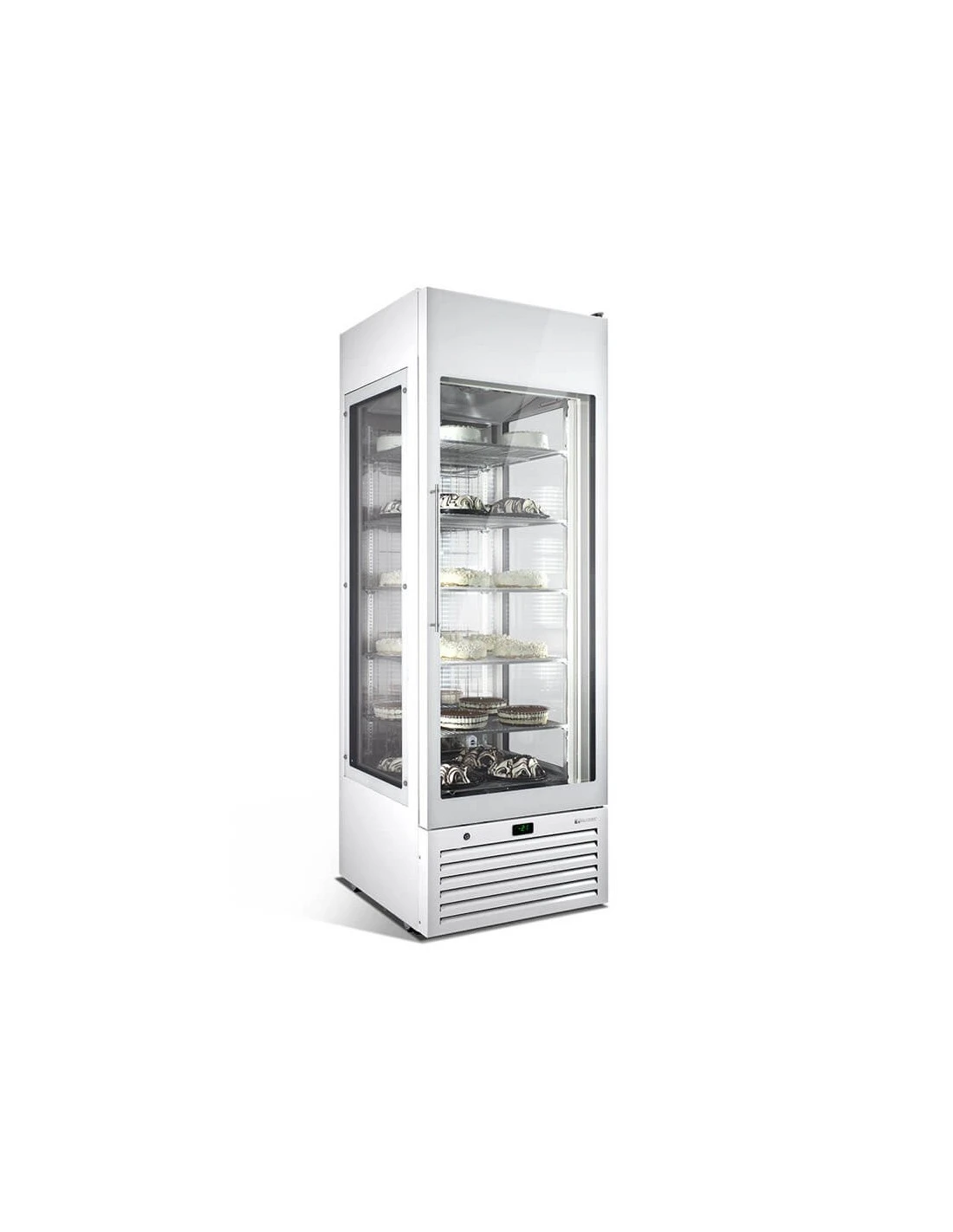 Vetrina espositiva dal design elegante e raffinato con temperature positive o negative e tre ampi lati vetrati per una massima visibilità. Questa vetrina è ideale per ogni tipo di prodotto da pasticceria e gelateria. L’interno ha uno specchio utile per esaltare il prodotto esposto.
